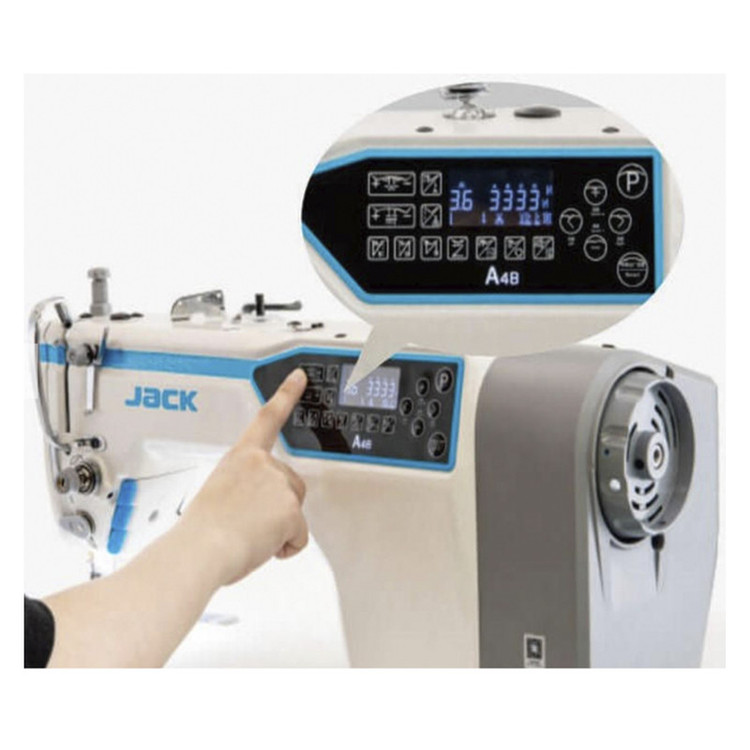 چرخ خیاطی صنعتی راسته معمولی دوز تمام کامپیوتری جک مدل A4B دور موتور 5000 به همراه میز و پایه اصلی و قطعات اصلی و گارانتی طلایی اصلی شرکت جک
