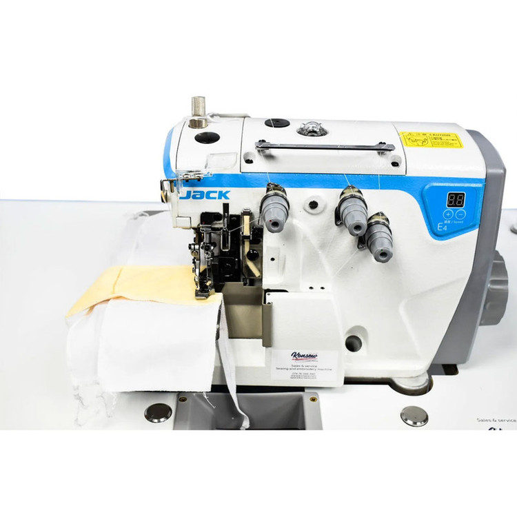 چرخ خیاطی صنعتی سردوز سه نخ جک(JACK) مدل E4s-3 اصلی به همراه میز و پایه و قطعات و گارانتی طلایی اصلی شرکت ایران جک (پسکرایه)